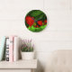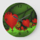 Red Hearts Lime Green Modern Abstract Fractal Art Large Clock