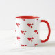 The image features a delightful pattern of small, pink heart shapes arranged against a clean, white background.