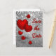 Elegant Save the Date wedding design illustration: 3D red hearts on a glamourous silver glitter and bokeh background with sparkling bright stars.