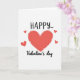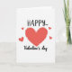 This card features a large, deep red heart centered on a bright white background, giving the whole design a crisp, open feel ❤️. Four smaller red hearts float around it like little companions, adding a light, friendly rhythm that feels like love being passed back and forth 🥰. The word “HAPPY” sits above the main heart in thick, uppercase letters, colored in the same rich red as the hearts. Below the heart, “Valentine’s day” appears in a flowing, cursive-style line, also in red, gently curving to frame the centerpiece. Each heart has a thin white dashed outline, like stitching, which makes the shapes feel soft and cared for. A subtle shadow on the big heart adds a touch of depth without making the layout busy. The smaller hearts are spaced unevenly around the center, and every heart keeps that white dashed border against the plain white field.