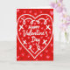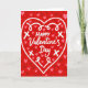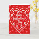 This Valentine's Day card features a deep ruby-red background filled with small hearts and little “x” kiss marks scattered all over. In the center, there’s a large white heart outline with uneven, looping curves that make it feel sweet and real. Inside that heart, the text says “Happy Valentine’s Day” in white. “Happy” sits at the top in simple uppercase letters, while “Valentine’s Day” is written below in a flowing brush-style lettering. Around the main heart, tiny hearts in blush pink and darker red appear both filled-in and outlined, adding extra warmth. The overall look feels like a happy burst of affection, like you’re giving someone a big hug in card form 🥰❤️. It’s meaningful because it keeps the message clear and loving, without needing anything more.