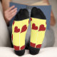 Red hearts pattern on yellow socks