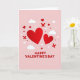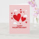 This greeting card opens on a soft blush-pink background that feels like a gentle blush in the air 🥰. Near the top center, two large crimson hearts sit side by side, close enough to read as a sweet pair ❤️. Around them, smaller hearts in red and white scatter like confetti, mixed with puffy white clouds and little “X” marks that hint at kisses. The shapes are spaced with lots of breathing room, so the eye can drift upward as if the icons are floating. Light drop shadows sit under each heart, cloud, and “X,” making them look slightly raised from the surface. Along the lower portion of the card, the text “HAPPY VALENTINE’S DAY” is set in all caps and colored red, centered and easy to spot. The final detail is the way the white clouds and tiny red-and-white hearts frame the two big hearts while the red message anchors the bottom.