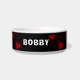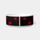 Red Hearts Sparkles Dots Pattern Name Bowl. This simple and stylish design comes with red hearts, sparkles and dots on a black background. Add your dog's name.
