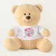 This cute teddy has original painting of a red heart illustration on his t-shirt. The white bow around the heart has a love message on it, the message is customizable and can be personalised with your own message.