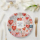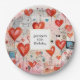 Red Hearts Whimsical Love Pattern Birthday Paper Plates