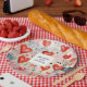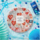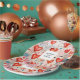 Paper plates with a fun mixed media style pattern. Big red hearts and various random shapes scattered around making a delightfully cute pattern.