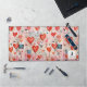 Desk mat with a fun mixed media style pattern. Big red hearts and various random shapes scattered around making a delightfully cute pattern.