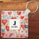 Red Hearts Whimsical Love Pattern Monogram Keychain