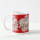 A beautiful clear red with spectacular white flowers all the way around. Dress a table with it or drink your morning cup of joe out of and feel festive!