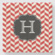 Red Herringbone Chevron Pattern with Monogram Stone Coaster