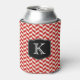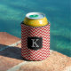 Red Herringbone Chevrons Pattern with Monogram Can Cooler
