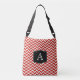 Red Herringbone Chevrons Pattern with Monogram Crossbody Bag
