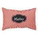 An attractive and comfy pet bed in a red and white herringbone chevron pattern, complete with your pet's name. Personalize the sample name shown with your pet's name. This item makes a wonderful gift for someone with a new pet.