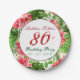 Classic and elegant seamless pattern design made of red Hibiscus flowers and leaves with three half transparent square tags for your text. Customizable 80th birthday party paper plate. You can easily change text (font, color, size and position), change transparency of the tags (copy or delete one of them) and change size and position of the background image by clicking the personalize or customizable button. Matching birthday paper napkin and other products.