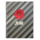 Bold stylishn notebook with red Hibiscus flower and modern monochromatic stripes in smokey shades of gray personalized with bold Initials is a unique and sophisticated style for your Journaling and note keeping. This is original botanical photography by JLW_Photography.