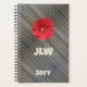Bold stylish Planner with red Hibiscus flower and modern monochromatic stripes in smokey shades of gray personalized with bold Initials is a unique and sophisticated style for keeping track of your plans.