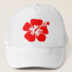 Red hibiscus flower trucker hat