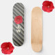 A bold red Hibiscus flower on a stylish sophisticated skateboard with modern monochromatic stripes in smokey shades of gray personalized with Initial(s).