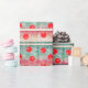 Wrap up your gifts with this festive design featuring red holiday ornaments scattered about a background of pretty Christmas colors.
