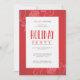 A pretty holiday party invitation featuring a floral pattern on a red background. The party details are written in modern font. You can move/delete/change most of the design elements/fonts/background according to your choice/preferences.