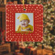 A red Merry and Jolly double-sided Christmas ornament that has a template for you to insert your own photo on each side, two photos total. Under each photo you can personalize the text with names, announcement or whatever you like. Get creative and make it a keepsake to remember for yourself or as a gift.