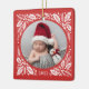 Custom photo ornament with hand-drawn winter foliage.