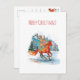 Red horse galloping through a snowy, Christmas Holiday Postcard