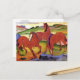 A fine art postcard with Red Horses (1911) by Franz Marc (1880-1916). Marc was a German artist from the expressionist movement, he founded the group of artists called, the Blue Rider (Der Blaue Reiter). His work is characterized by bright primary colors and cubist animals. This painting portrays three red horses on a green hilly landscape.