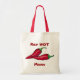 Two bright red hot peppers on this tote bag, with the words "Red HOT Mama". Text is customizable.