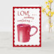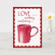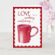 A red hot mug of tea or coffee, with the handle in the shape of half a heart, the other half reflected on the mug itself. A wonderfully subtle gift for the special person in your life for Valentine’s Day, a Birthday, an Anniversary or just to say hello, I miss you or I love you. Lovely matching card, postcard, sticker, magnet, button, mousepad, bag, apron, t-shirt.