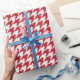 Red and white colored Houndstooth textile pattern wrapping paper.