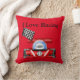Red "I Love Racing" Throw Pillow w/Race Car & Flag