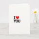 This card shows a simple white background with the message “I ❤️ YOU” placed right in the center. The “I” sits on the top line in black capital letters, and a red heart symbol takes the place of the word “love.” Just below that, “YOU” appears in matching black capital letters, lined up neatly under the first line. The letters look like straightforward print, making the words easy to read at a glance. The bright red heart stands out as the main focus and feels like the warmest part of the message ❤️. With nothing else on the card, the words feel honest and direct, which can mean a lot when you want to say something real. It’s a meaningful choice for a partner, close friend, or anyone you care about, because it says “I love you” without adding extra noise 🥰.