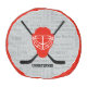 Red Ice Hockey Helmet and Sticks Typography Pouf