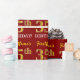This wrapping paper design features a message like "FirstName’s 35th BIRTHDAY!", with the "35th" having a faux/imitation gold-like color appearance. The name can be personalized, and the background is colored red. It could perhaps be used when wrapping gifts being given for somebody’s thirty fifth birthday. [~Z0000178]