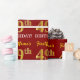 This wrapping paper design features a message like "FirstName’s 49th BIRTHDAY!", with the "49th" having a faux/imitation gold-like color appearance. The name can be customized, and the background is colored red. It could perhaps be used when wrapping gifts being given for somebody’s forty ninth birthday. [~Z0000178]