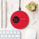Red Initial W (editable) Circle Monogram Wireless Charger