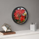 Decorate a living space with this stylish wall clock with black numerals that features a colorful photo image of bright, red maple leaves and a miniature, red Shinto shrine in a Japanese garden. Use to decorate a living room, dining room, kitchen, bedroom, or any other room. Select your clock size and style. Photo: Point Defiance Park Japanese Garden