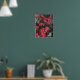 Decorate a living space with this poster print that features the photographic image of red Japanese Maple leaf shadows against a dark grey, wooden building wall. A stunning, botanical image! Select your poster print size and other options as desired.
