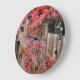 Decorate a living space with this stylish wall clock with black numerals that features a photo image of autumn colored Japanese Maple leaves along a bamboo fence in a Japanese garden. Select your clock size, style and hand color.