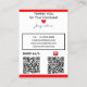 Handmade Jewelry By Name in white against bright red background. Crafted with Love in black script (keep or insert short tagline, or delete to leave area blank). Name will appear on front and backside. Two Small Circles against black and white framed background. NOTE: Circles are not pre-cut, you will need to use a Small hole punch to make clean cut small holes, to then place your Earrings in. Backside: Insert telephone number, email address, website, social media handle, as needed. Insert Your Business QR Code on left-hand side for customers to Shop 24/7, and Pinterest (or other) social media link site QR Code on right-hand side (leave Pinterest icon, or insert other social media icons, or delete icon). Original Design by TamiraZDesigns.