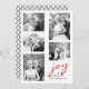 Red joy newlyweds five photo collage black and white Christmas photo card. The back covers a pattern in black and white.