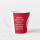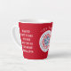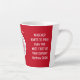Customizable KING CHARLES III CORONATION Latte Mug in RED, with CUSTOMIZABLE TEXT based on Christian Bible verse in Matthew 20:26. Design shows the rose of England, the thistle of Scotland, the daffodil of Wales and the shamrock of Northern Ireland in a beautiful red and blue floral emblem. The quote reads WHOEVER WANTS TO RULE OVER YOU MUST FIRST BE YOUR SERVANT, which is based on Matthew 20:26, which is repeated on the front and back. You can PERSONALIZE THIS TEXT with your own wording, eg. add your family/organization name. The curved wording reads ICH DIEN (I serve - royal motto) and you can ADD YOUR NAME here instead. This King Charles III Coronation latte mug would make great commemorative gift for you to celebrate this momentous occasion in British royal history with your family, friends, colleagues and clients. Matching gifts available.