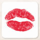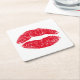 Red Kissing Lips Square Paper Coaster