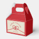 Modern minimalist double happiness couple's knot of union, love and marriage in bright red and barley beige wedding favor box.