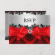 Red RSVP. Elegant lace damask design & red silk bow. Customize with your own details. Please note: All flat images. They do not have real bows, lace or jewels!