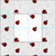 This fun fabric features a cute pattern of red and black ladybugs leaving a heart trail on a white background. Everyone's favorite bug!