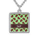 Red ladybugs on green sterling silver necklace