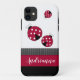A trendy ladybug case with customized text to add a name. Click the "transfer to another product" link to view this design on other case styles.